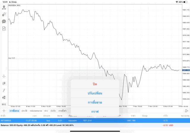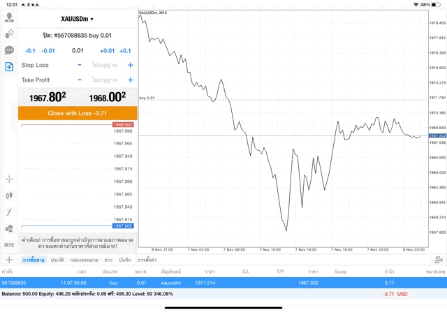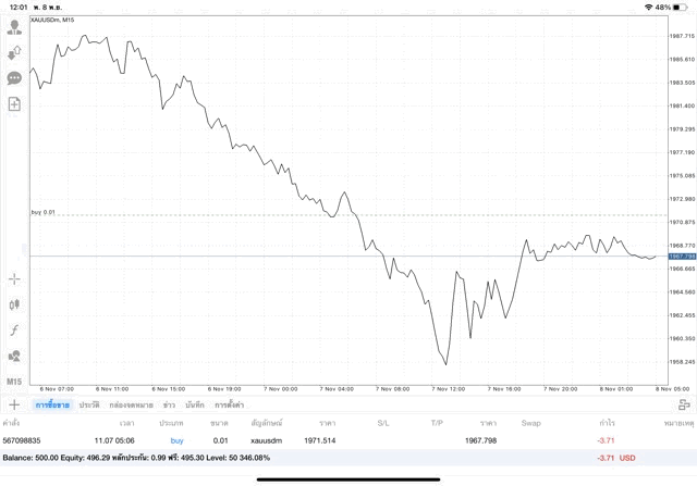 ติดลบ ขาดทุน -3.71 USD ถ้าเปิดการเทรดครั้งนี้ไว้ต่อ การลงทุนครั้งนี้อาจกลับมาได้กำไร หรือ อาจติดลบเพิ่มขึ้น