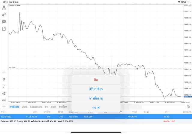 ได้ติดลบ ขาดทุน -85.44 USD ถ้าเปิดการเทรดครั้งนี้ไว้ต่อ การลงทุนครั้งนี้อาจกลับมาได้กำไร หรือ อาจติดลบเพิ่มขึ้น