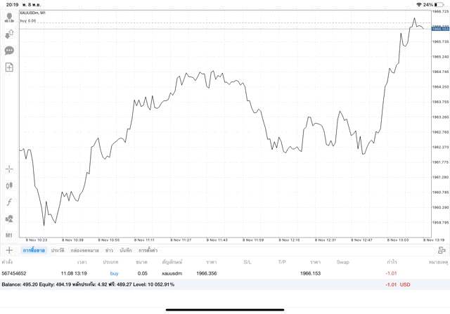 การเทรด XAUUSDm 0.05 lot