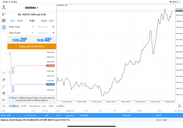กำไรแล้ว บวก +60.15$ ถ้าเปิดการเทรดครั้งนี้ไว้ต่อ การลงทุนครั้งนี้อาจได้บวกเพิ่มได้กำไรเพิ่มขึ้น หรือ อาจกลับไปติดลบขาดทุน