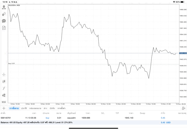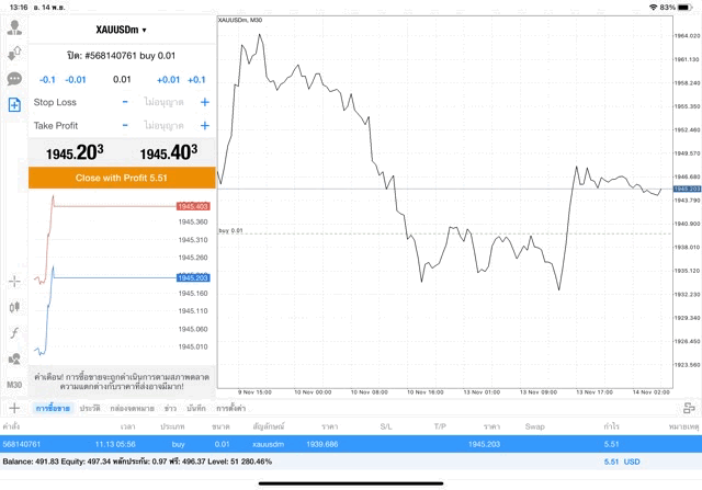 XAUUSDm 0.01 lot แอพ mt4 exness