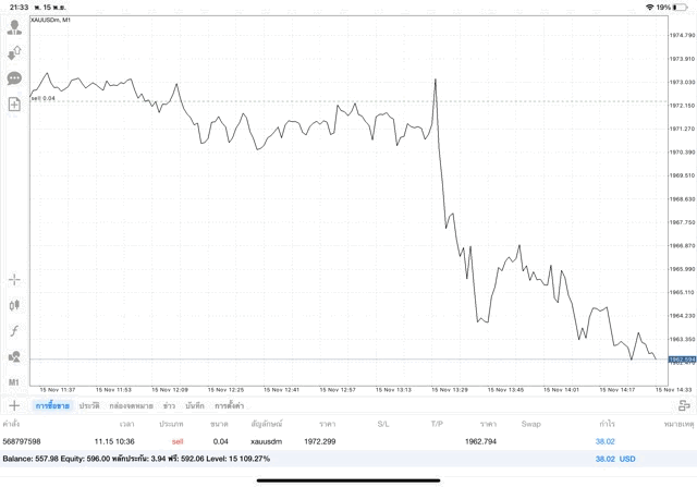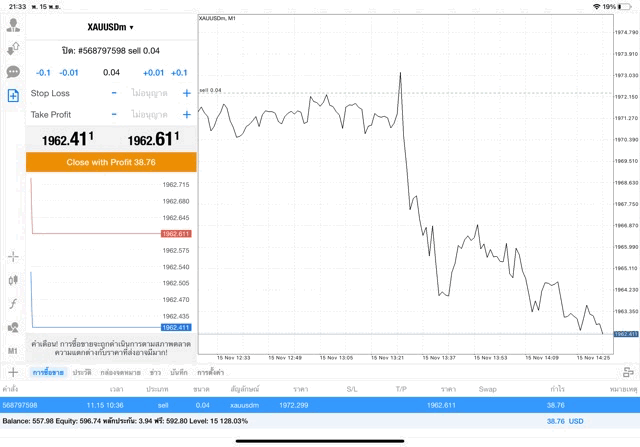 ได้กำไรแล้ว บวก +38.02$ ถ้าเปิดการเทรดครั้งนี้ไว้ต่อ การลงทุนครั้งนี้อาจได้บวกเพิ่มได้กำไรเพิ่มขึ้น หรือ อาจกลับไปติดลบขาดทุน