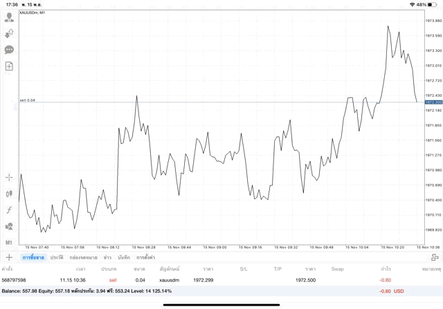 กรอกจำนวน lot แล้ว คลิ๊กปุ่ม Buy by market หรือ Sell by market เช่น 0.04 lot