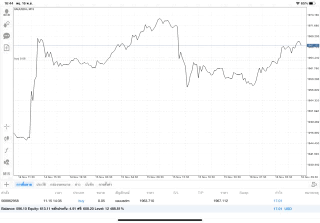 ได้กำไรแล้ว บวก +17.01$ ถ้าเปิดการเทรดครั้งนี้ไว้ต่อ การลงทุนครั้งนี้อาจได้บวกเพิ่มได้กำไรเพิ่มขึ้น หรือ อาจกลับไปติดลบขาดทุน