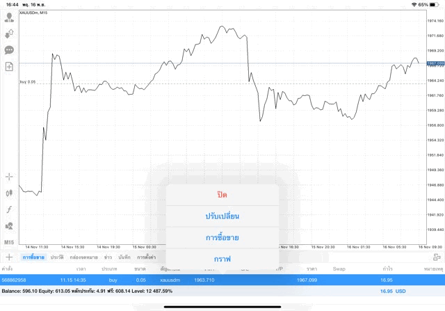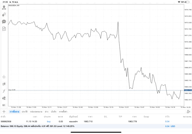 การเทรด XAUUSDm 0.05 lot