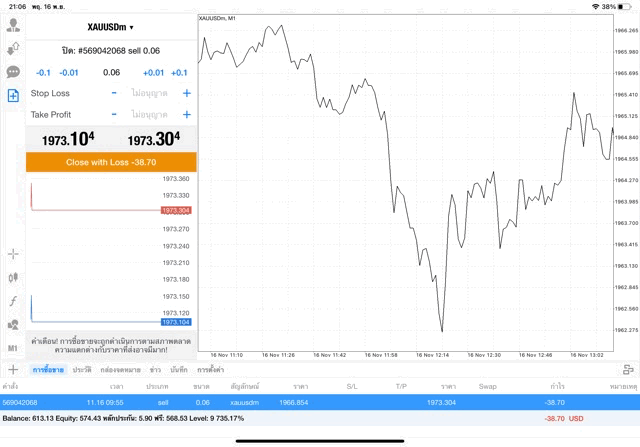 การเทรด XAUUSDm 0.06 lot