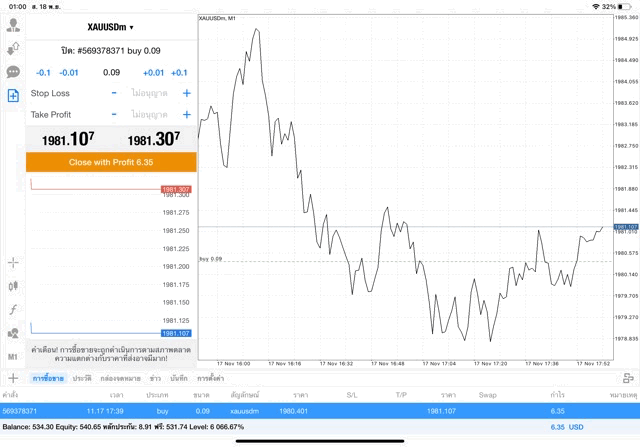 การเทรด XAUUSDm 0.09 lot