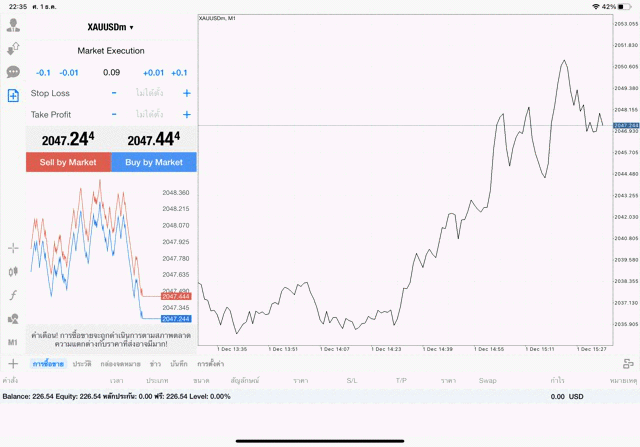 กรอกจำนวน lot แล้ว คลิ๊กปุ่ม Buy by market หรือ Sell by market เช่น 0.09 lot