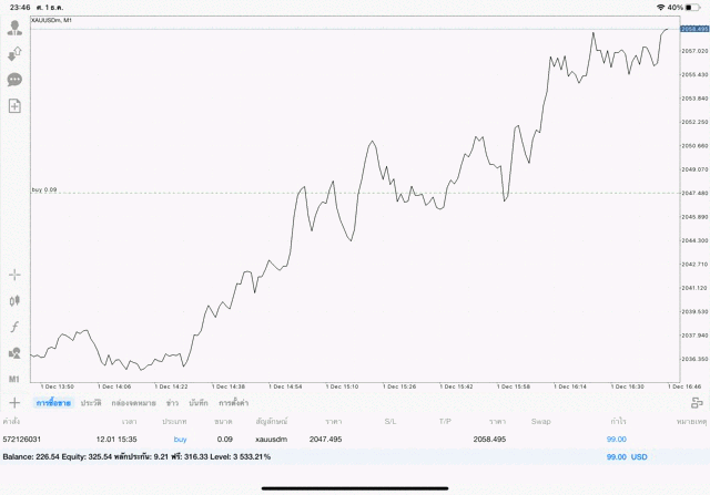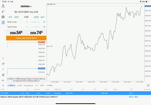 กำไรแล้ว บวก +99.00 $ ถ้าเปิดการเทรดครั้งนี้ไว้ต่อ การลงทุนครั้งนี้อาจได้บวกเพิ่มได้กำไรเพิ่มขึ้น หรือ อาจกลับไปติดลบขาดทุน