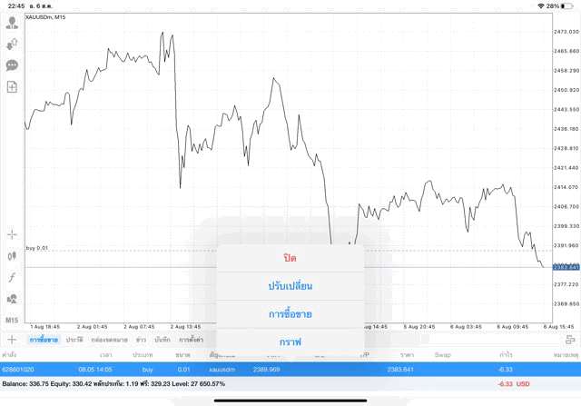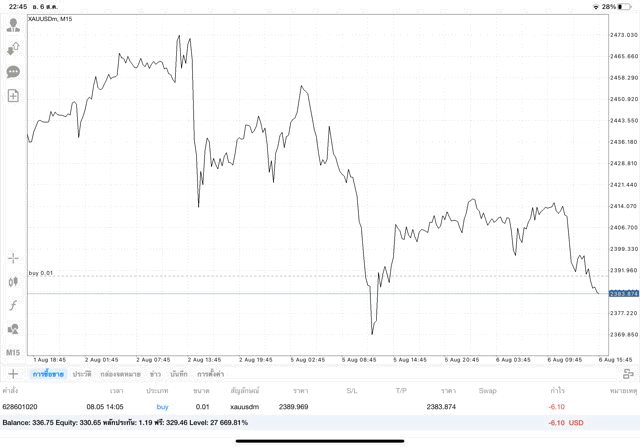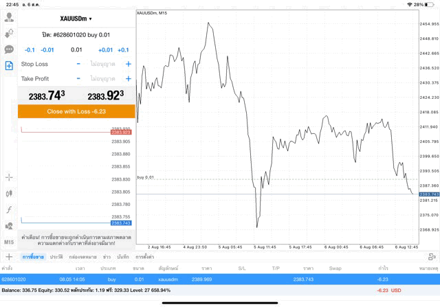 ขาดทุน ติดลบ -6.10$ ถ้าเปิดการเทรดครั้งนี้ไว้ต่อ ผลการลงทุนยังเปลี่ยนแปลงได้ อาจบวก อาจลบ บวกเพิ่ม ลบเพิ่ม