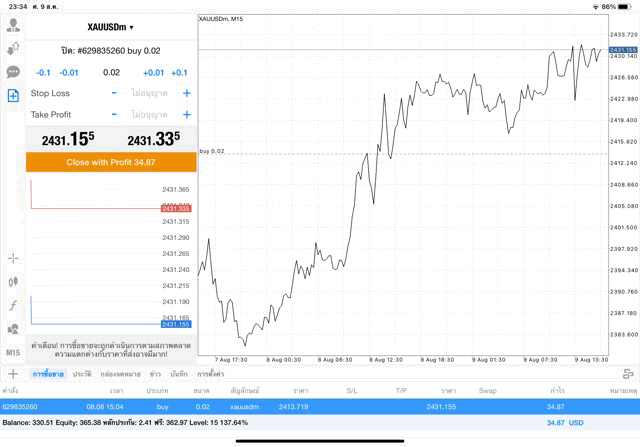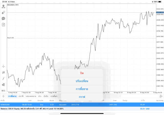 การเทรด XAUUSDm 0.02 lot
