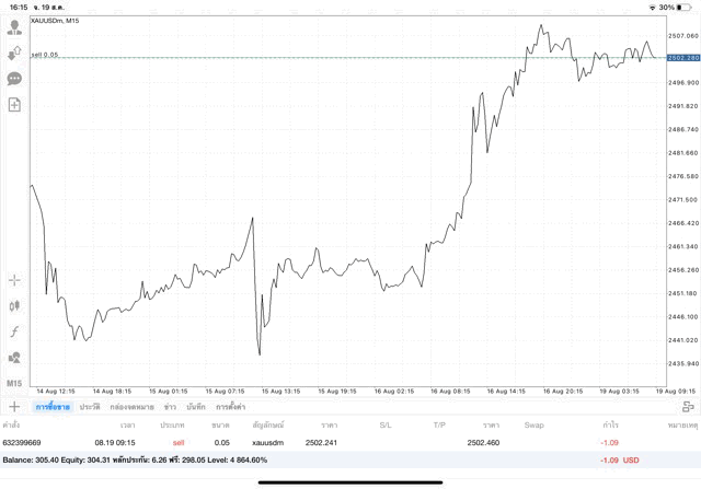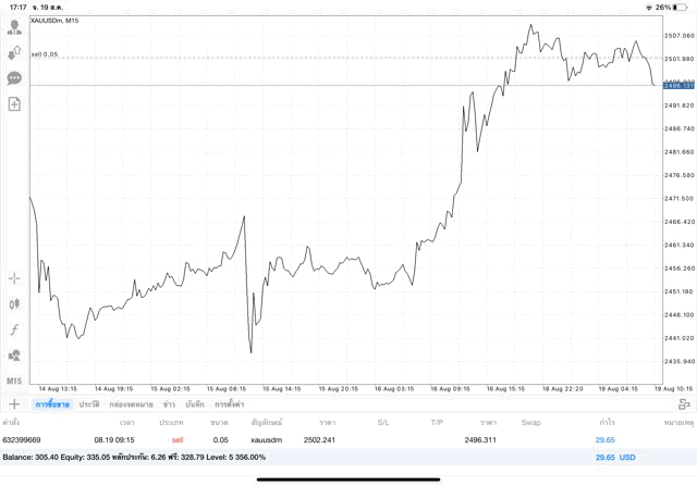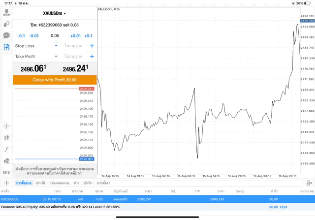 การเทรด XAUUSDm 0.05 lot