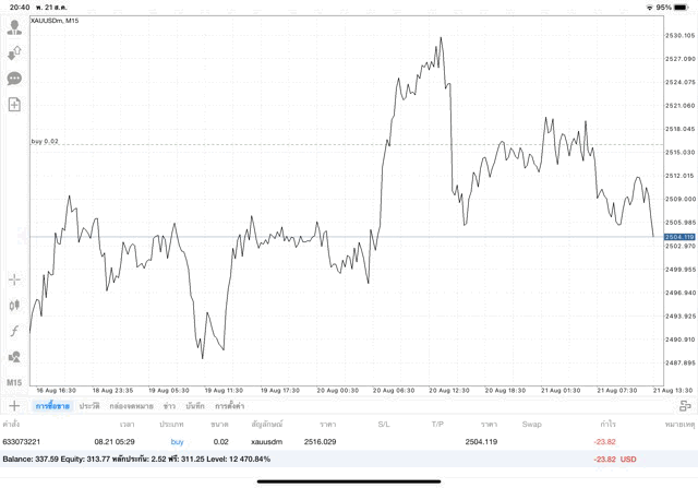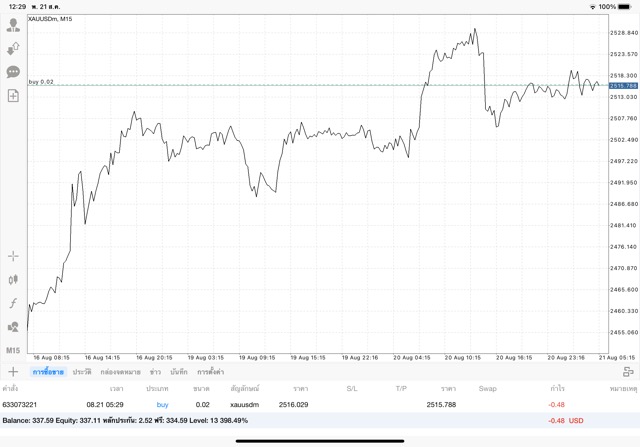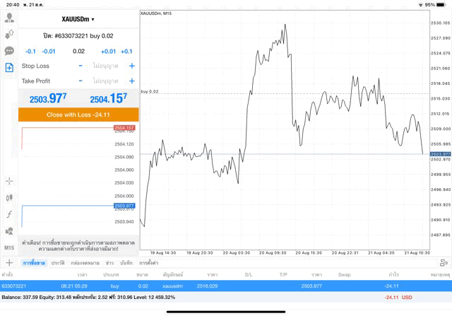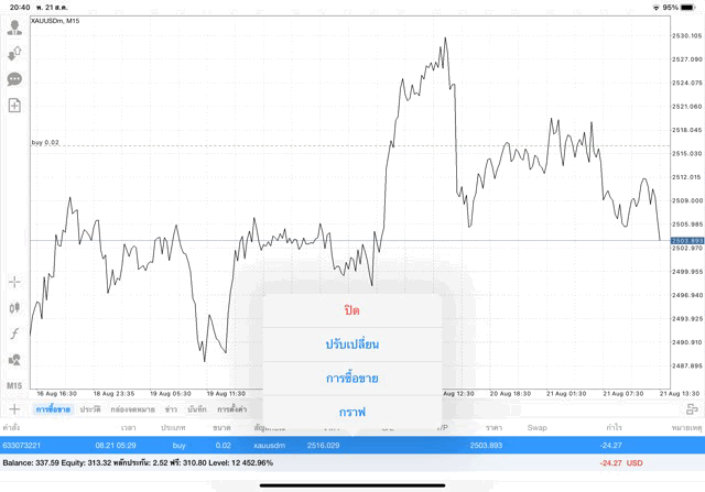 การเทรด XAUUSDm 0.02 lot