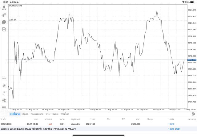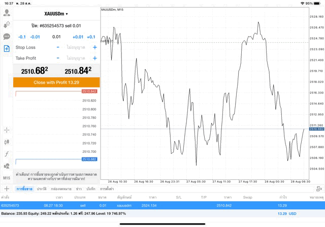 บวก +13.29$ ถ้าเปิดการเทรดครั้งนี้ไว้ต่อ ผลการลงทุนยังเปลี่ยนแปลงได้ อาจบวก อาจลบ บวกเพิ่ม ลบเพิ่ม