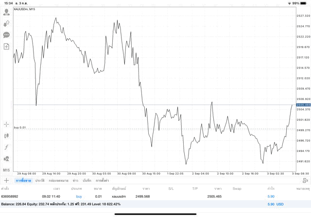 ได้บวก +5.90$ ถ้าเปิดการเทรดครั้งนี้ไว้ต่อ ผลการลงทุนยังเปลี่ยนแปลงได้ อาจบวก อาจลบ บวกเพิ่ม ลบเพิ่ม