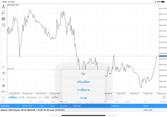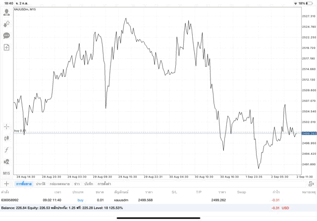 การเทรด XAUUSDm 0.01 lot