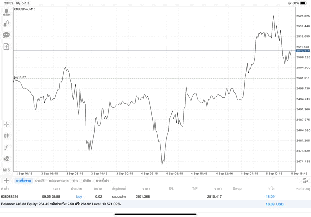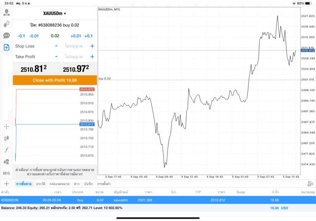 บวก ได้กำไร +18.09$ ถ้าเปิดการเทรดครั้งนี้ไว้ต่อ ผลการลงทุนยังมีการเปลี่ยนแปลง อาจ ลบ บวก ได้กำไรเพิ่ม ขาดทุนเพิ่ม กลับมาได้กำไร กลับมาขาดทุน