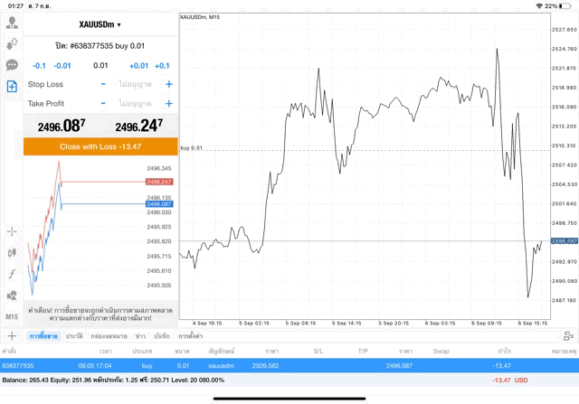 ลบ -13.58$ ถ้าเปิดการเทรดครั้งนี้ไว้ต่อ ผลการลงทุนยังเปลี่ยนแปลงได้ อาจบวก อาจลบ บวกเพิ่ม ลบเพิ่ม