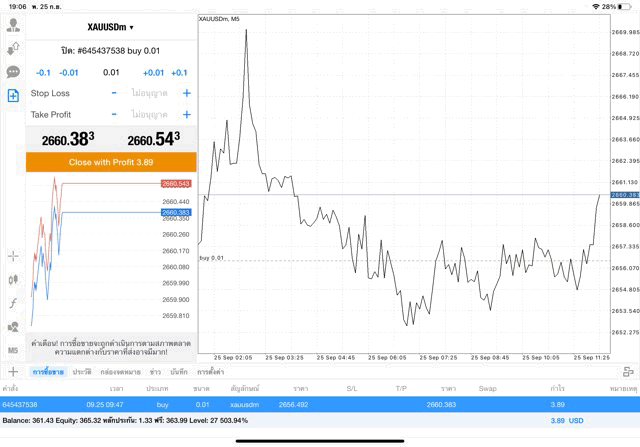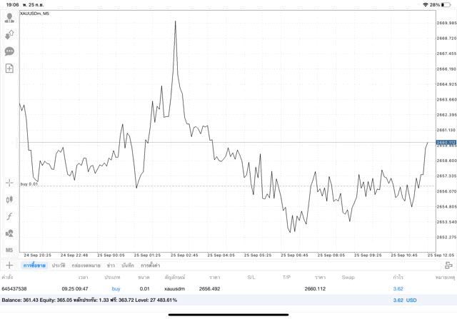 บวก +3.62$ ถ้าเปิดการเทรดครั้งนี้ไว้ต่อ ผลการลงทุนยังเปลี่ยนแปลงได้ อาจบวก อาจลบ บวกเพิ่ม ลบเพิ่ม