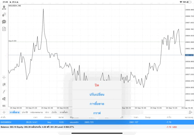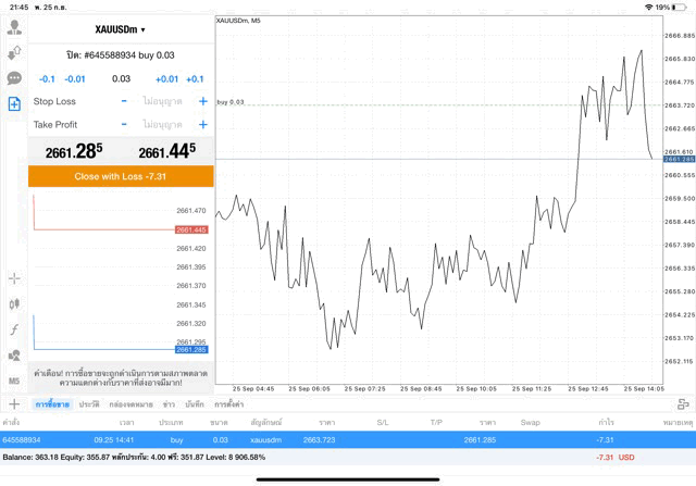 ลบ -7.08 $ ถ้าเปิดการเทรดครั้งนี้ไว้ต่อ ผลการลงทุนยังเปลี่ยนแปลงได้ อาจบวก อาจลบ บวกเพิ่ม ลบเพิ่ม