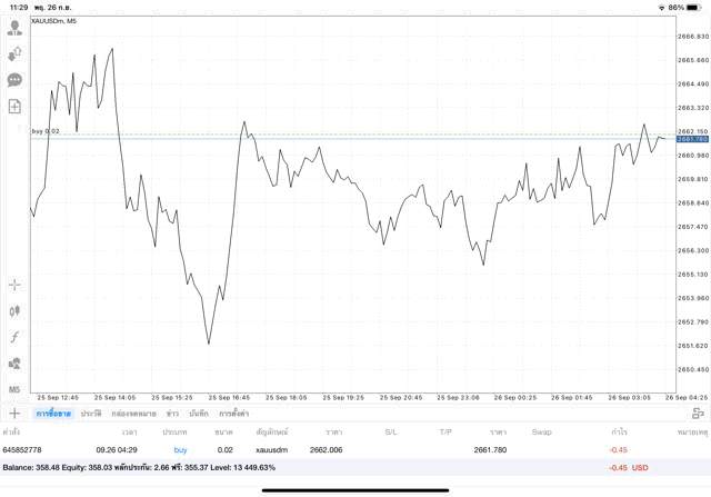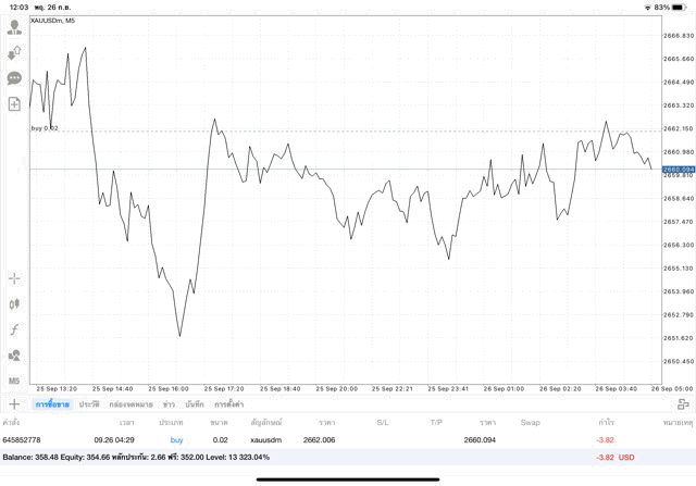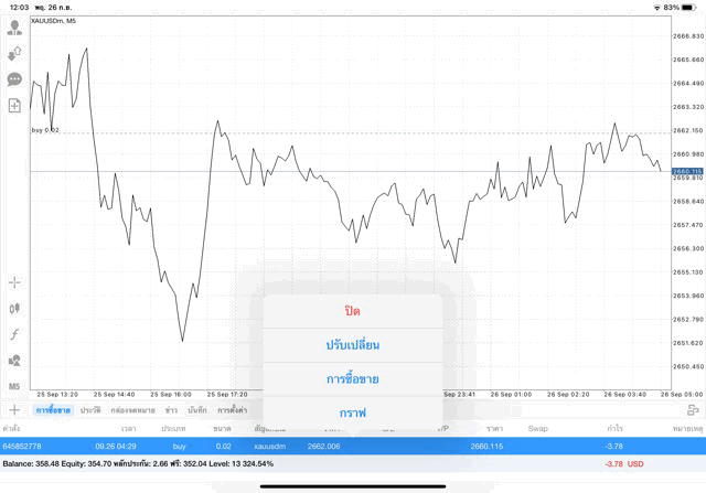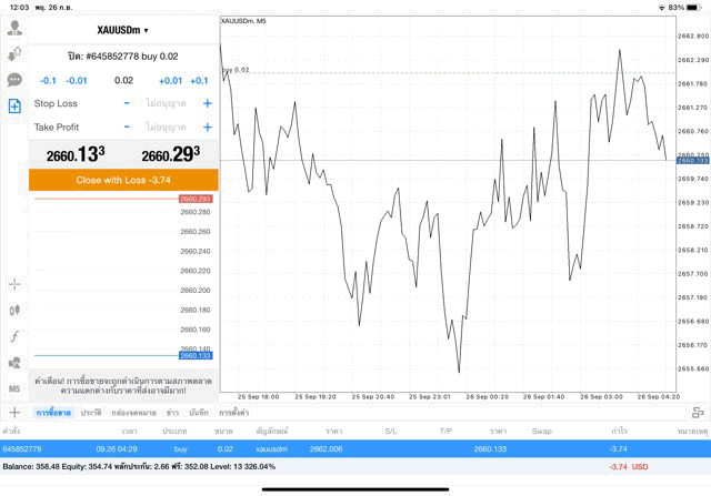 การเทรด XAUUSDm 0.02 lot