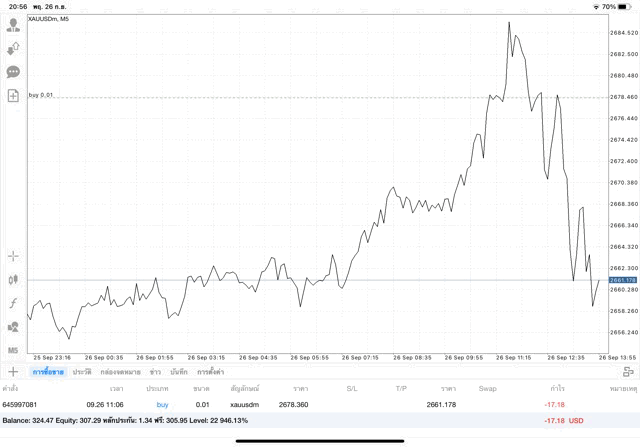 ลบ -17.18 $ ถ้าเปิดการเทรดครั้งนี้ไว้ต่อ ผลการลงทุนยังเปลี่ยนแปลงได้ อาจบวก อาจลบ บวกเพิ่ม ลบเพิ่ม