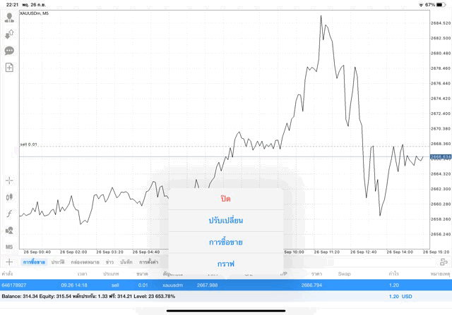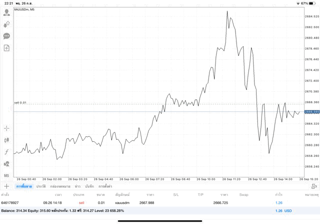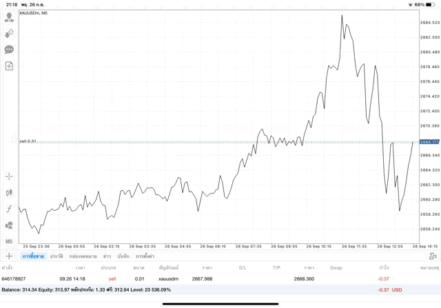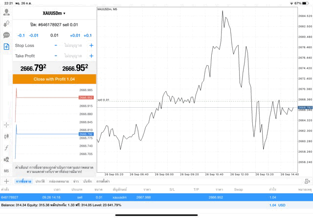การเทรด XAUUSDm 0.01 lot