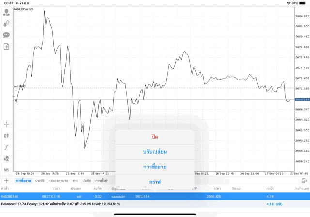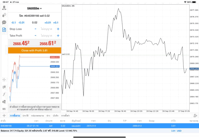 การเทรด XAUUSDm 0.02 lot