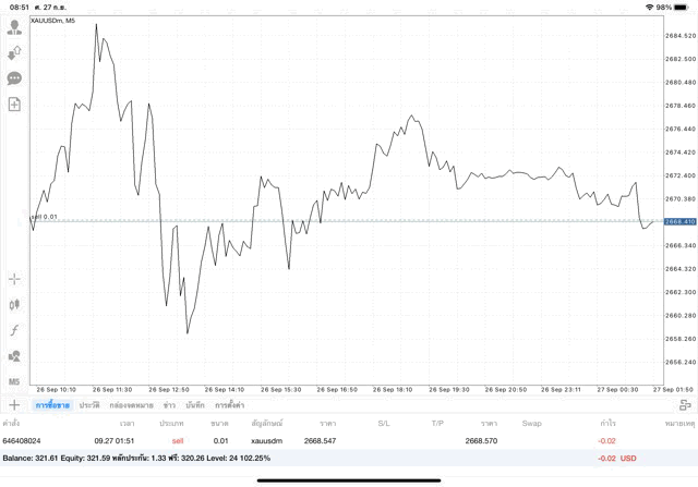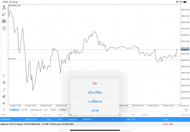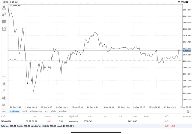 การเทรด XAUUSDm 0.01 lot