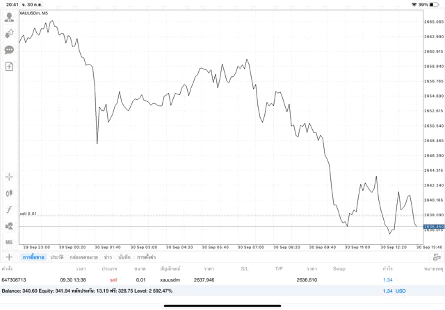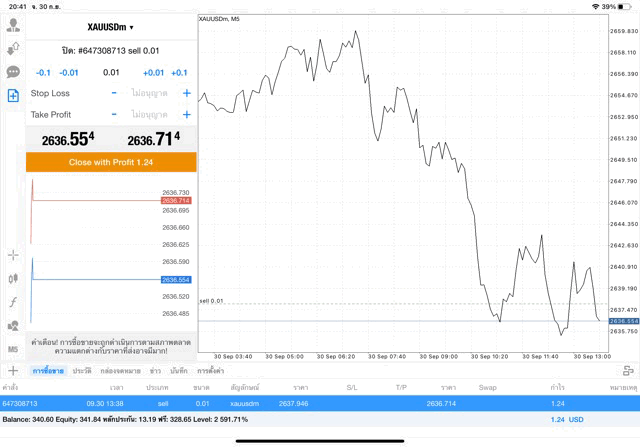 บวก +1.34 $ ถ้าเปิดการเทรดครั้งนี้ไว้ต่อ ผลการลงทุนยังเปลี่ยนแปลงได้ อาจบวก อาจลบ บวกเพิ่ม ลบเพิ่ม