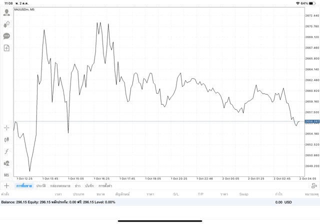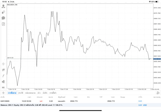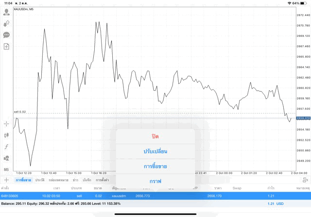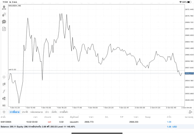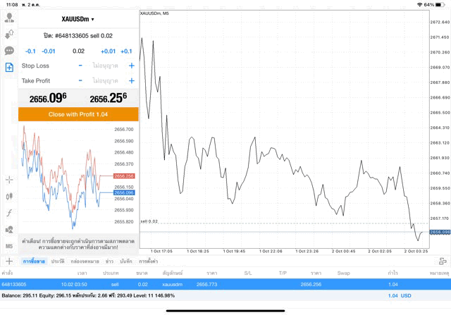 การเทรด XAUUSDm 0.02 lot