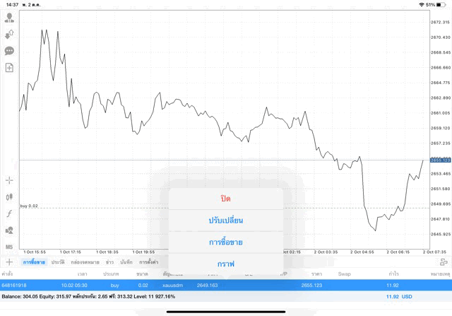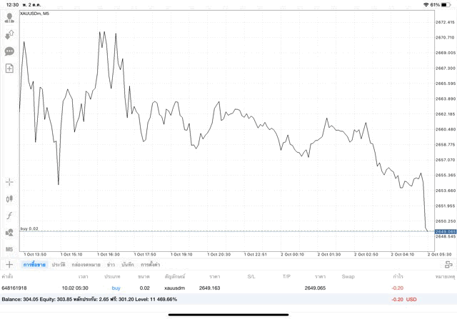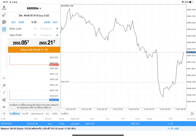 บวก +12.00 $ ถ้าเปิดการเทรดครั้งนี้ไว้ต่อ ผลการลงทุนยังเปลี่ยนแปลงได้ อาจบวก อาจลบ บวกเพิ่ม ลบเพิ่ม