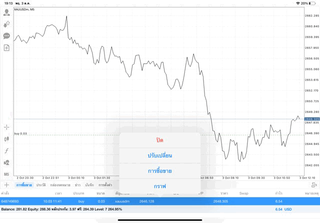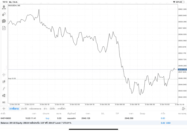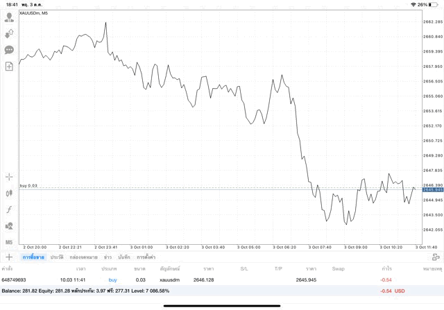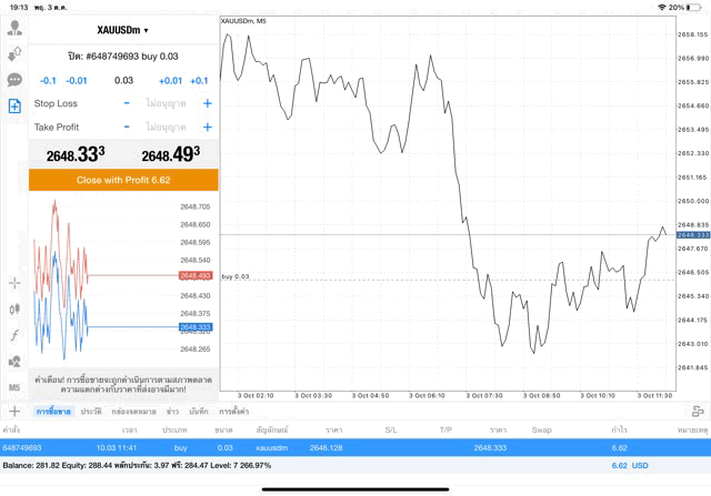 การเทรด XAUUSDm 0.03 lot