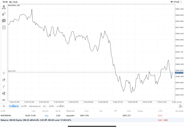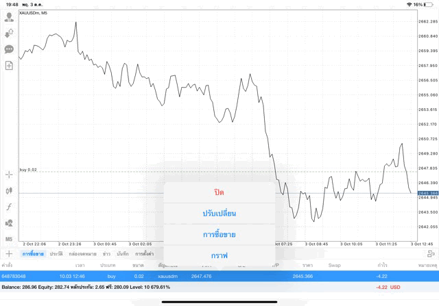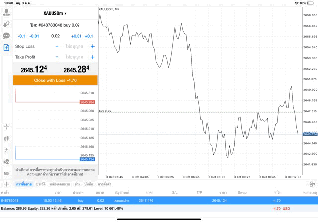 การเทรด XAUUSDm 0.02 lot