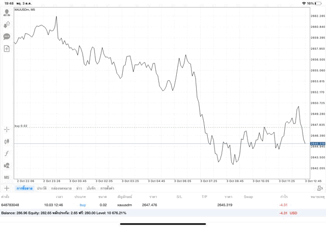 ลบ -4.31$ ถ้าเปิดการเทรดครั้งนี้ไว้ต่อ ผลการลงทุนยังเปลี่ยนแปลงได้ อาจบวก อาจลบ บวกเพิ่ม ลบเพิ่ม