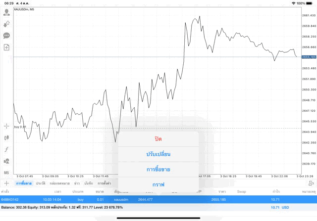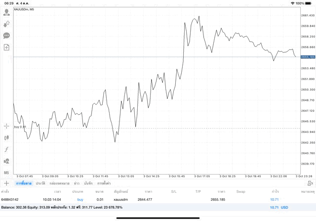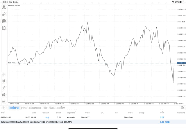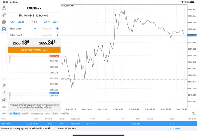การเทรด XAUUSDm 0.01 lot