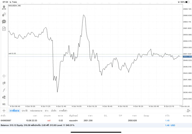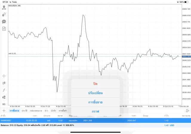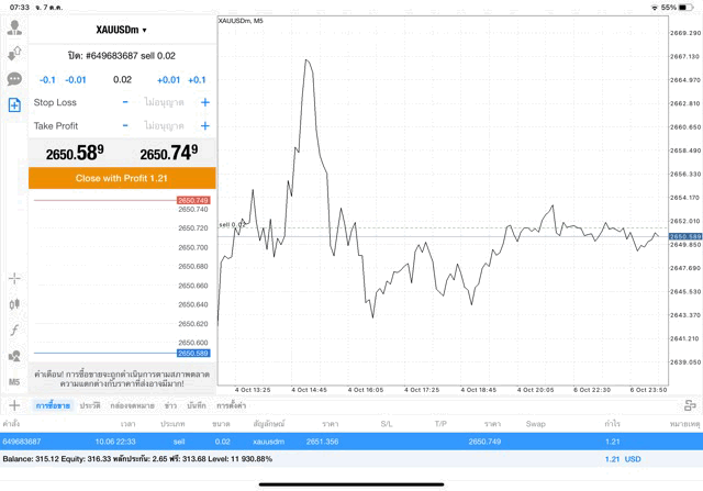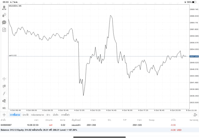 การเทรด XAUUSDm 0.02 lot