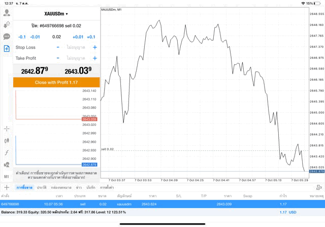บวก +1.31$ ถ้าเปิดการเทรดครั้งนี้ไว้ต่อ ผลการลงทุนยังเปลี่ยนแปลงได้ อาจบวก อาจลบ บวกเพิ่ม ลบเพิ่ม