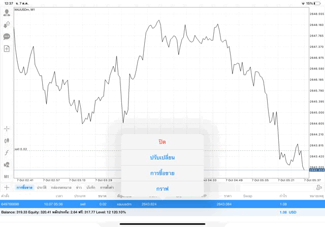 การเทรด XAUUSDm 0.02 lot