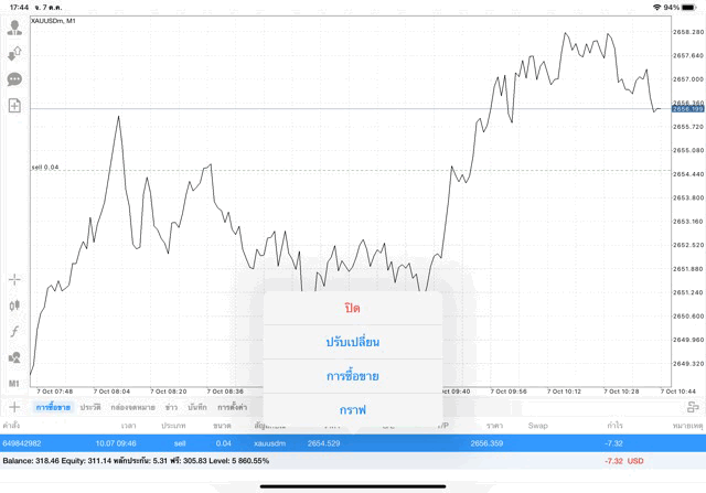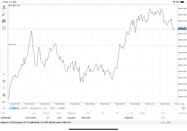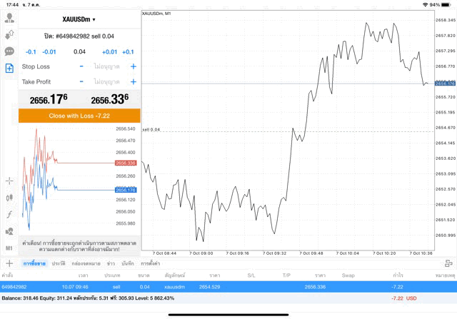 ลบ -7.31$ ถ้าเปิดการเทรดครั้งนี้ไว้ต่อ ผลการลงทุนยังเปลี่ยนแปลงได้ อาจบวก อาจลบ บวกเพิ่ม ลบเพิ่ม