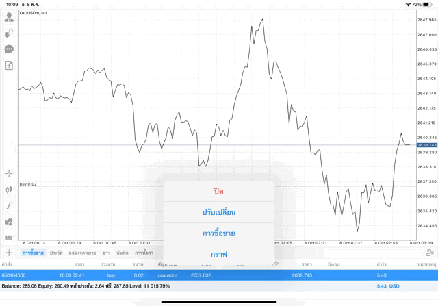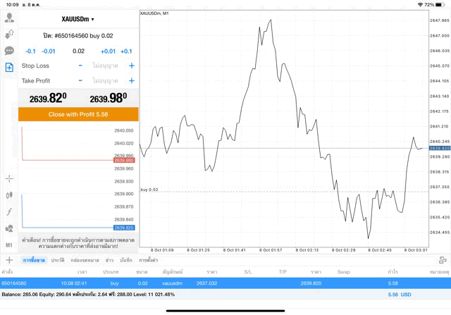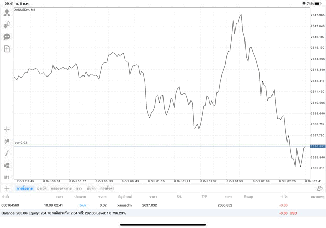 การเทรด XAUUSDm 0.02 lot