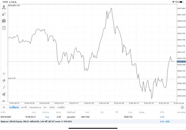 บวก +5.45$ ถ้าเปิดการเทรดครั้งนี้ไว้ต่อ ผลการลงทุนยังเปลี่ยนแปลงได้ อาจบวก อาจลบ บวกเพิ่ม ลบเพิ่ม