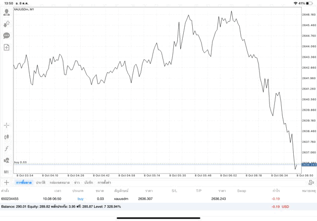 กรอกจำนวน lot แล้ว คลิ๊กปุ่ม Buy by market หรือ Sell by market เช่น 0.03 lot