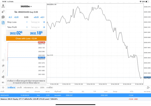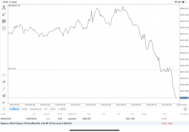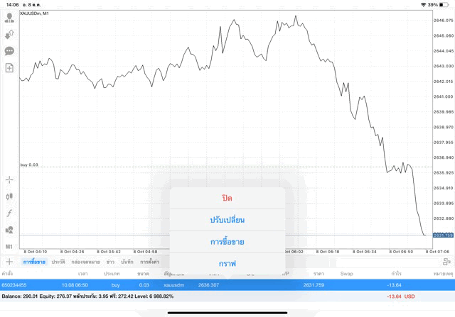 ลบ -13.62$ ถ้าเปิดการเทรดครั้งนี้ไว้ต่อ ผลการลงทุนยังเปลี่ยนแปลงได้ อาจบวก อาจลบ บวกเพิ่ม ลบเพิ่ม
