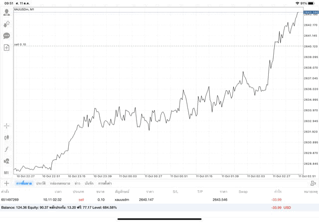 ลบ -33.99$ ถ้าเปิดการเทรดครั้งนี้ไว้ต่อ ผลการลงทุนยังเปลี่ยนแปลงได้ อาจบวก อาจลบ บวกเพิ่ม ลบเพิ่ม
