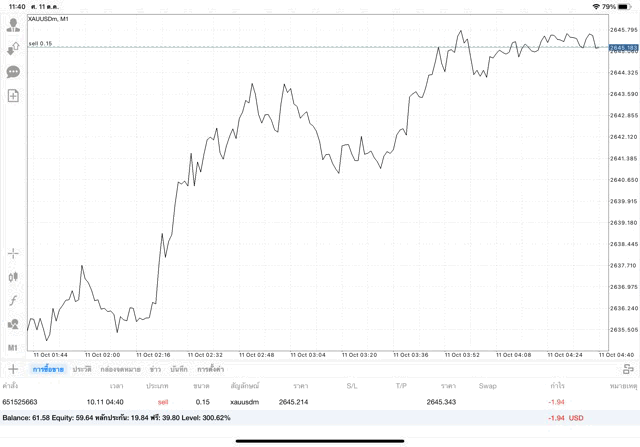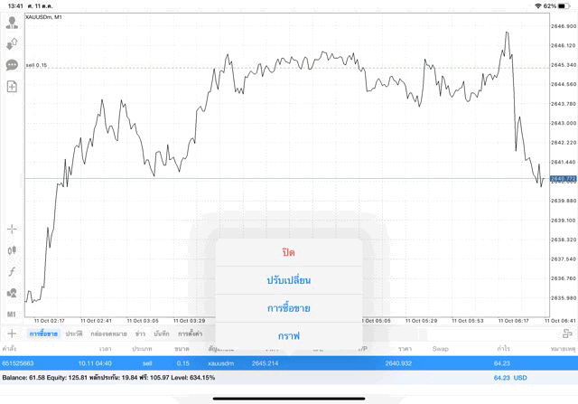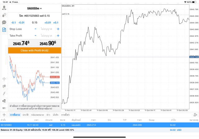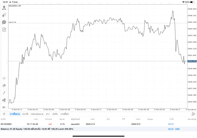 บวก +64.51$ ถ้าเปิดการเทรดครั้งนี้ไว้ต่อ ผลการลงทุนยังเปลี่ยนแปลงได้ อาจบวก อาจลบ บวกเพิ่ม ลบเพิ่ม