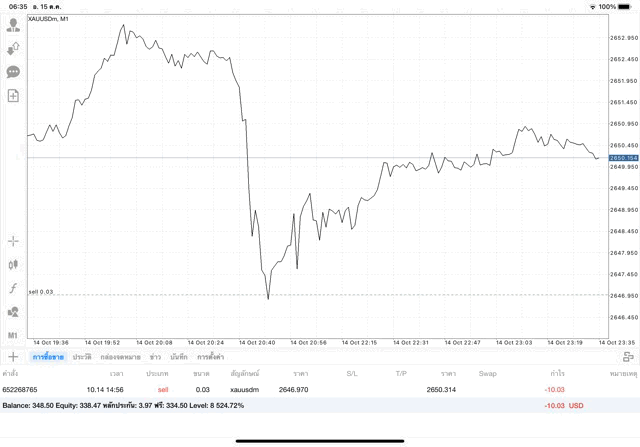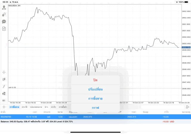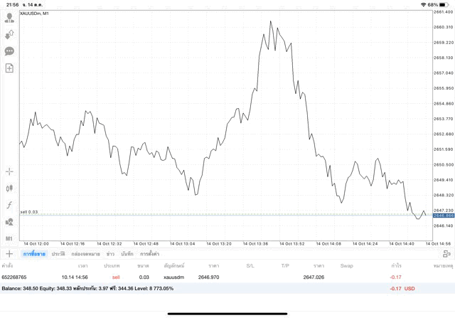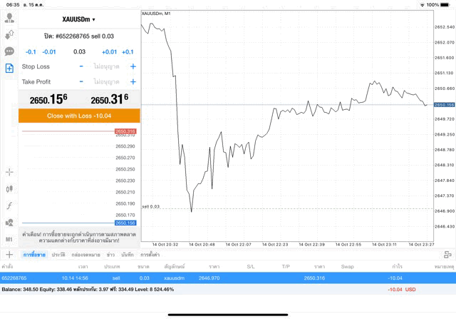 การเทรด XAUUSDm (ทองคำ) 0.03 lot แอพ Mt4