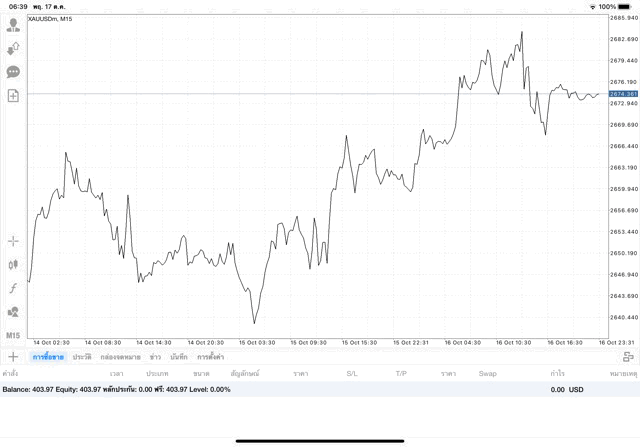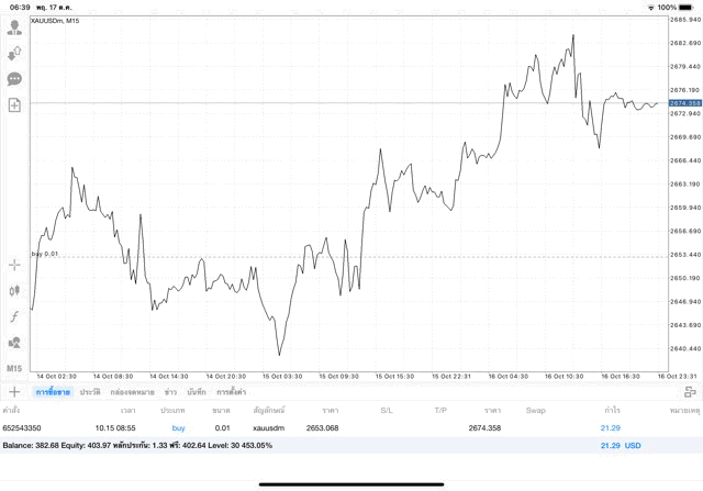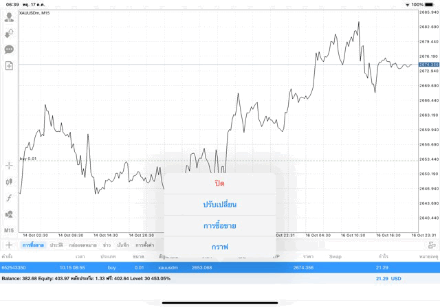 การเทรด XAUUSDm (ทองคำ) 0.01 lot แอพ Mt4