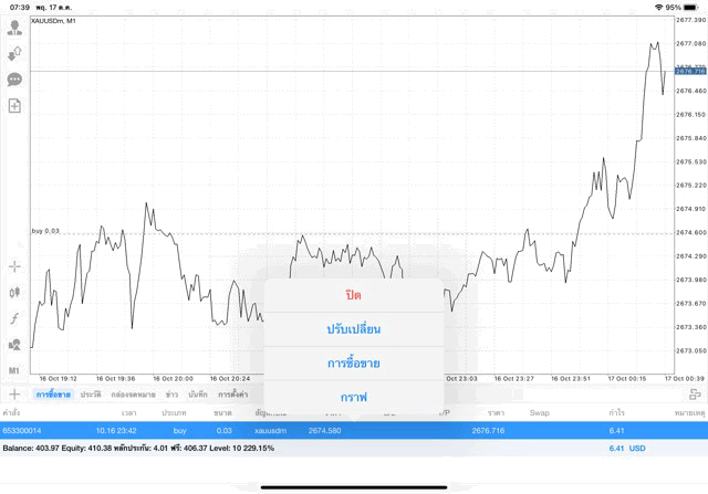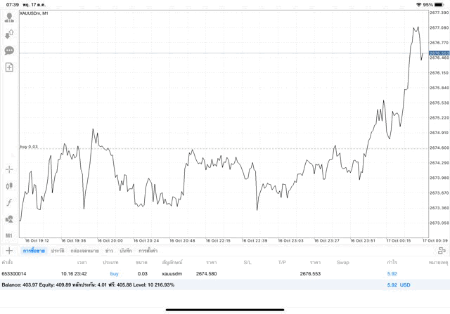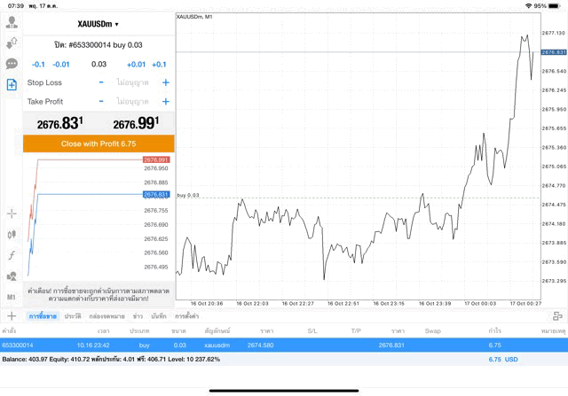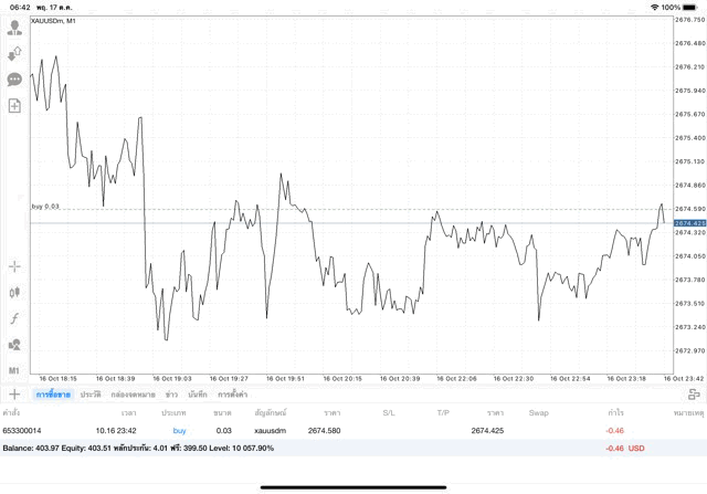 การเทรด XAUUSDm (ทองคำ) 0.03 lot แอพ Mt4