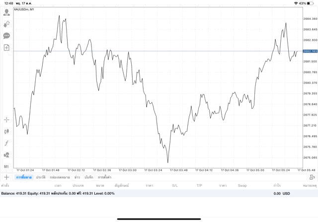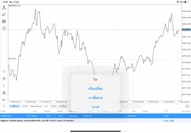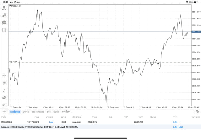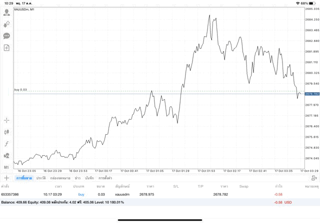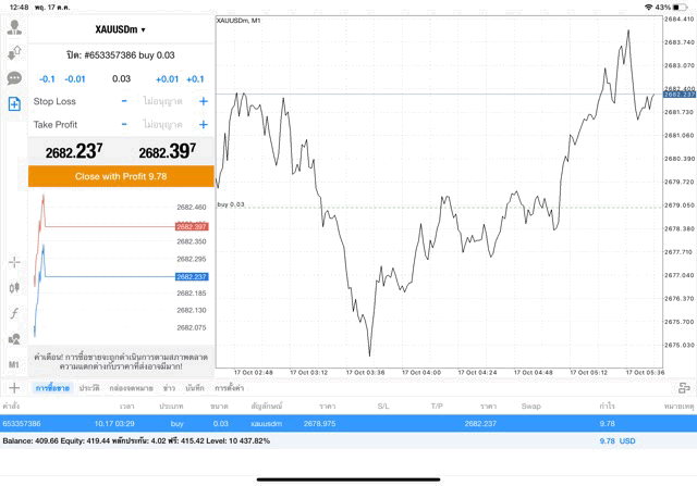 การเทรด XAUUSDm (ทองคำ) 0.03 lot แอพ Mt4